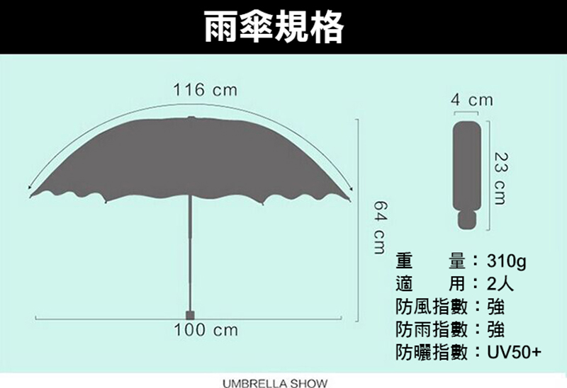 面遇水花,抗UV率99%,特殊弧型雨罩,防/遮雨/一次完成,尚女人的新