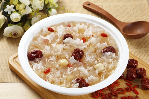 大大肉之後,一定要一碗甜,白木耳、子、、枸杞一起煨煮,少冰糖不口,吃甜甜好年