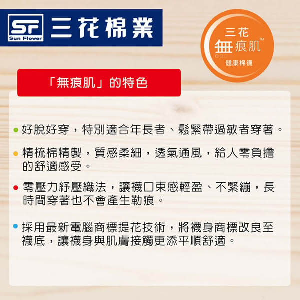 4、採用最新電腦商標提花技術,將襪身商標改良至襪底,讓襪身與肌膚接觸更添平順舒適。
