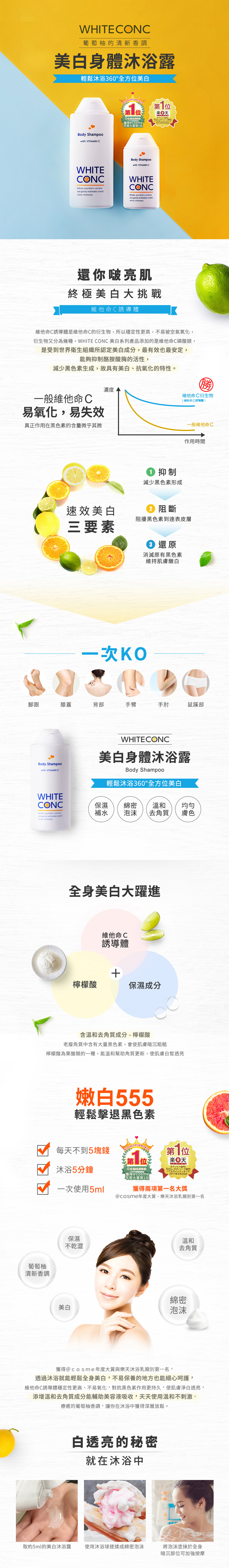 一拿到之後之,日本 WHITE CONC~用美白身沐浴露CII(360ml) - 03600004 CP值超高!