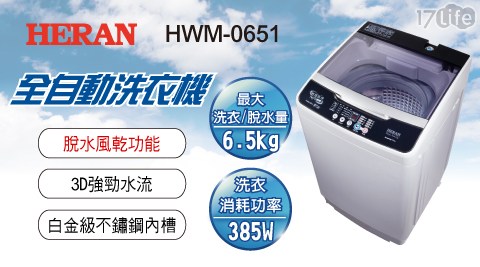 【HERAN禾】6.5公斤全自洗衣HWM-0651 ,推,箱,CP值,,,便宜,惠,介,排行,精,特,周年,,限
