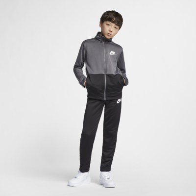 Nike Sportswear 大童 (男童) 運動服包含田徑外套與互相搭配的運動褲,採用柔軟材質,營造舒適包覆感。