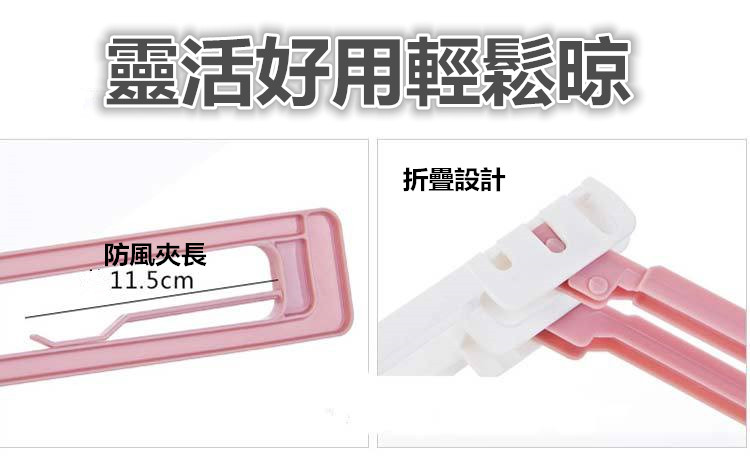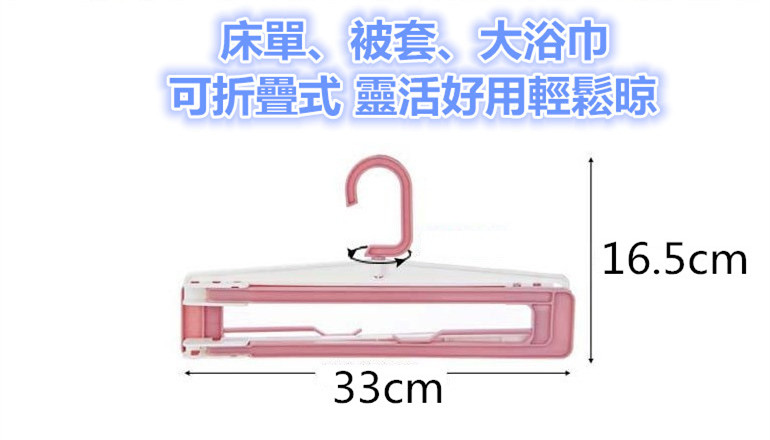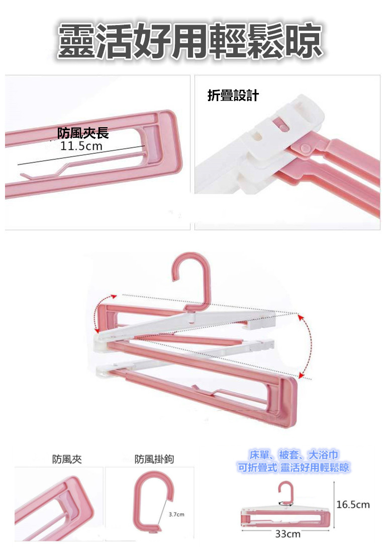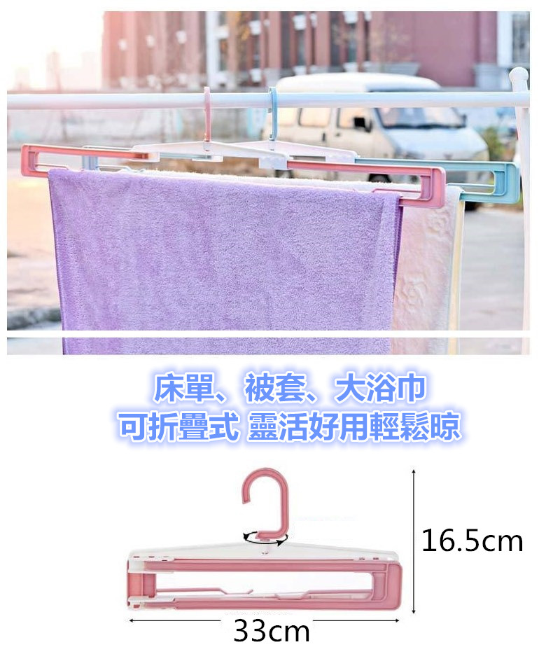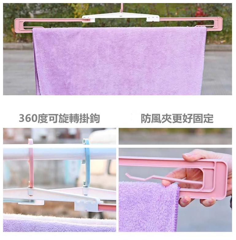 意折加收衣架,床/被套/浴巾,都可以晾!心防/防勾,更好固定,不怕被吹走!360度可旋勾,用更活。是你做家事的好手!