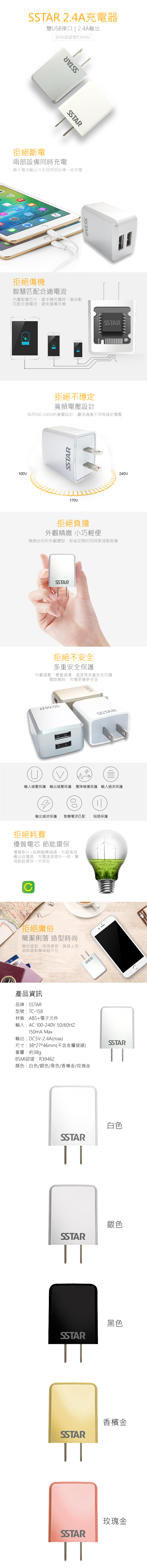 【SSTAR】 2.4A USB AC充器(TC-158) (一送一) 共" 的品介在下面,