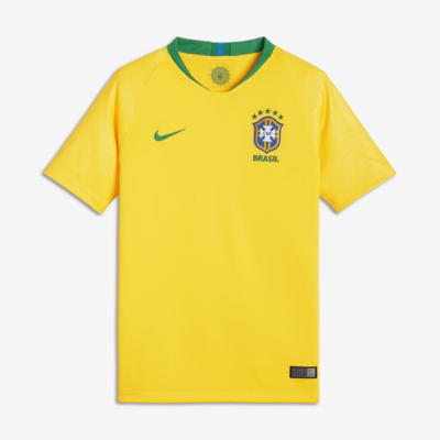 2018 Brasil CBF Stadium Home 大童足球球衣採用透氣排汗布料,場上場下均能常保涼爽舒適。