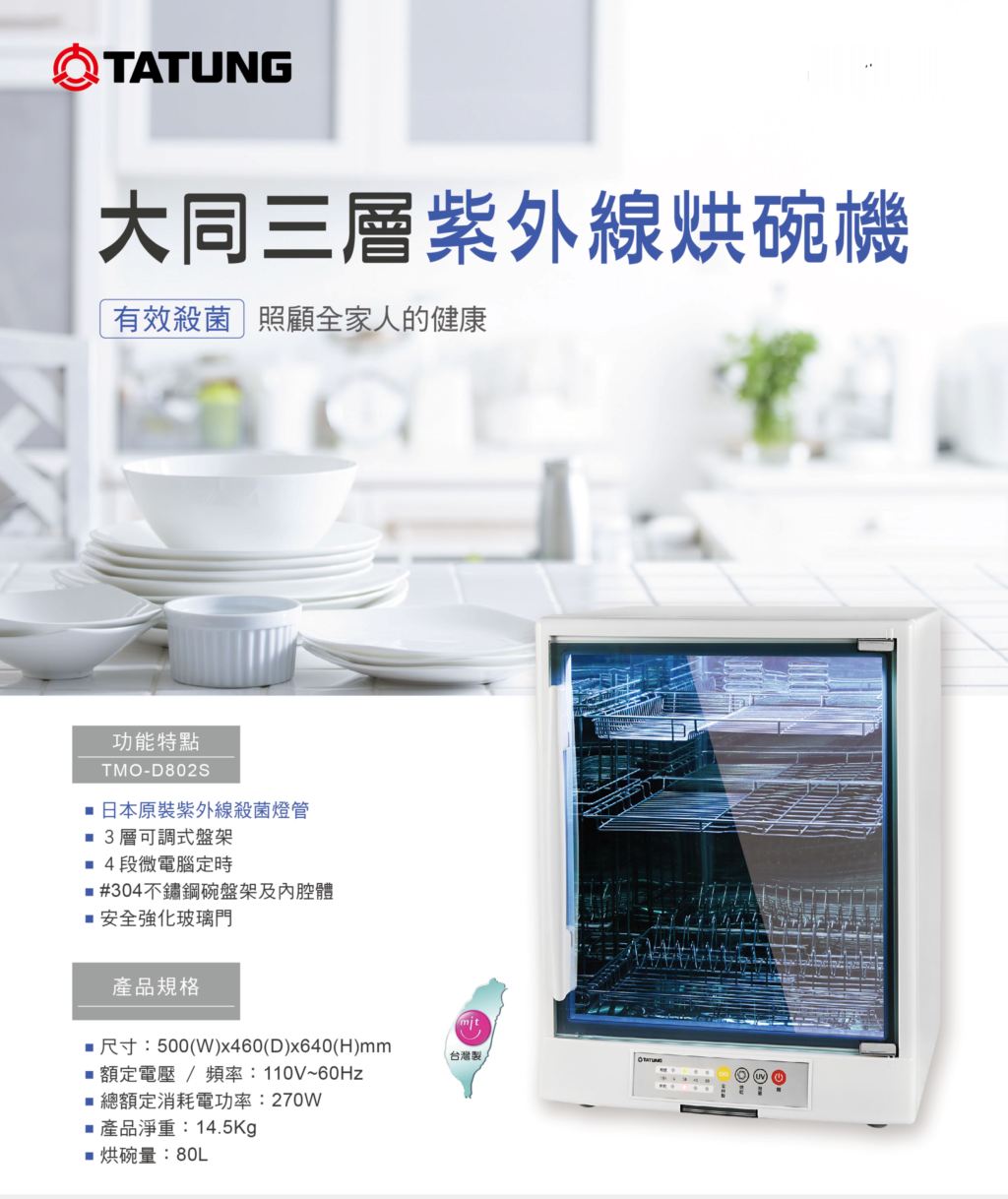 以下是【大同】 80L不烘碗TMO-D802S 的介 如果也跟我一喜不妨看看喔!