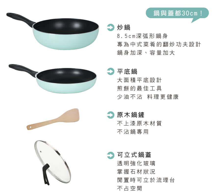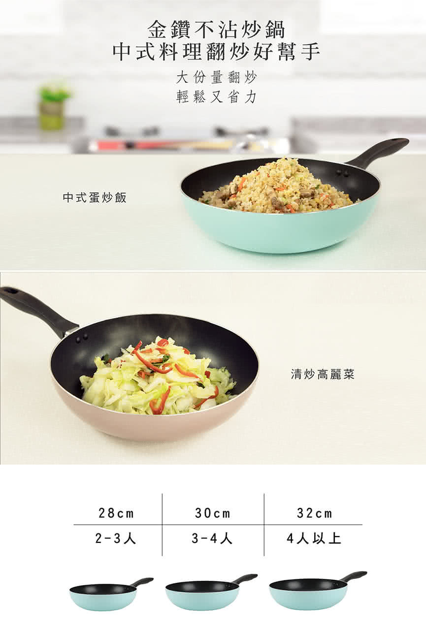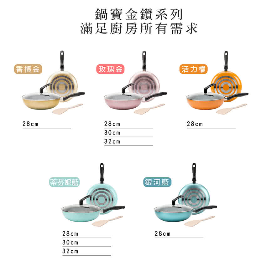 【免】【】金不沾四件-30CM-玫瑰金(30CM炒+30CM平底++木)-手商品