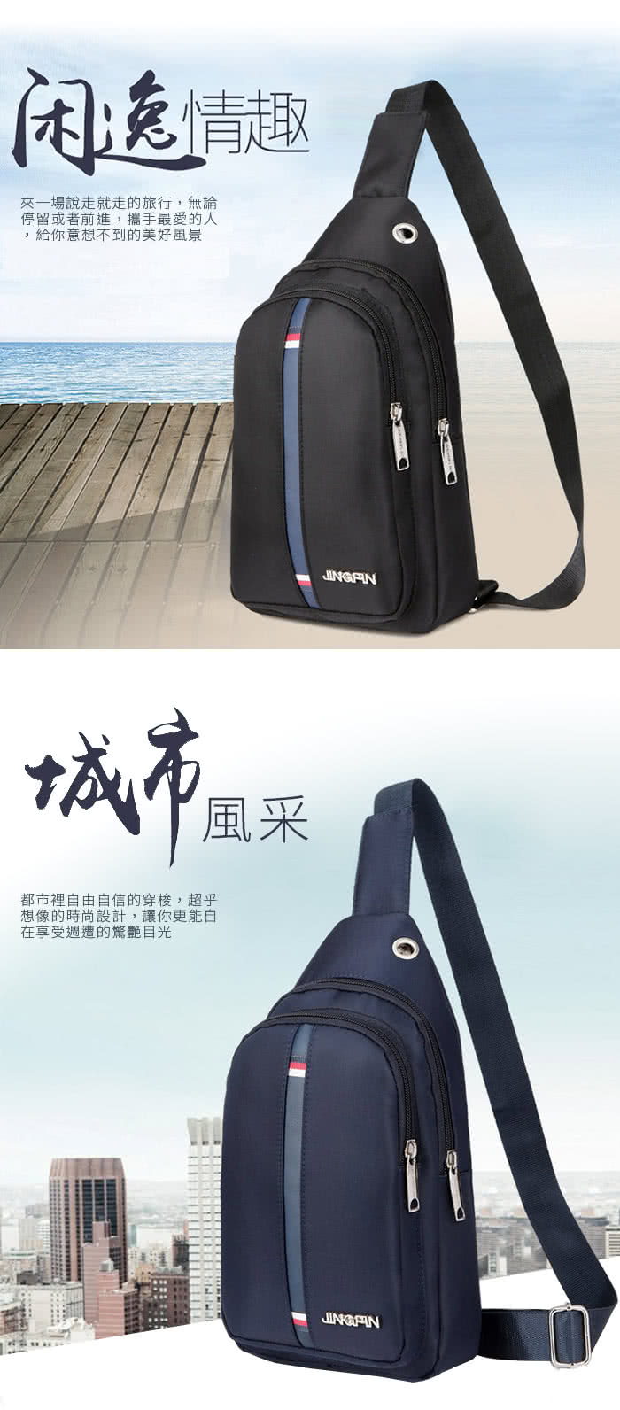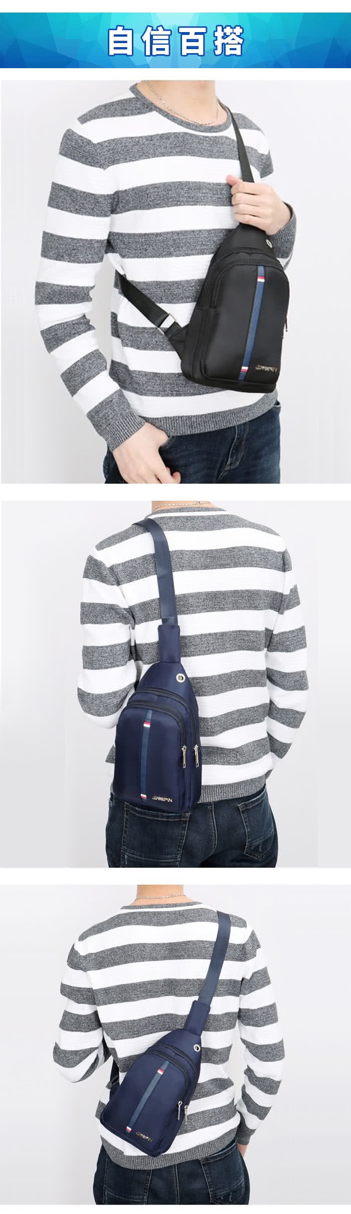 【活力邑】牛津布英肩包防水防刮休旅行背胸背斜背包(黑)事先搜了一下