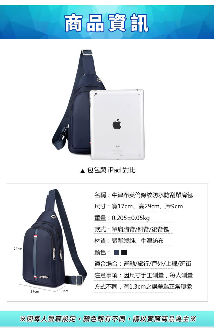 找超久的於我找到【活力邑】牛津布英肩包防水防刮休旅行背胸背斜背包(黑)