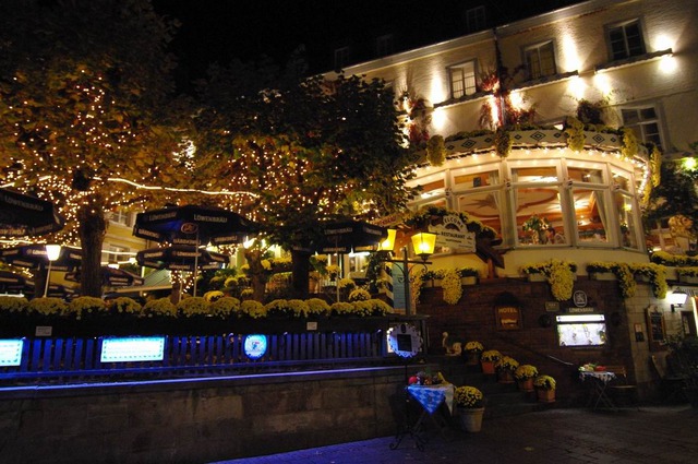 我所在的岔路口右去就是腓特烈泉三暖,路上不少行人都是附近家泉浴泡完出,在水翻流汗之後,大家都了,都在找地方吃晚餐