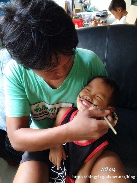 我一之下叫他自己乾自己穿衣服,我不要忙了,