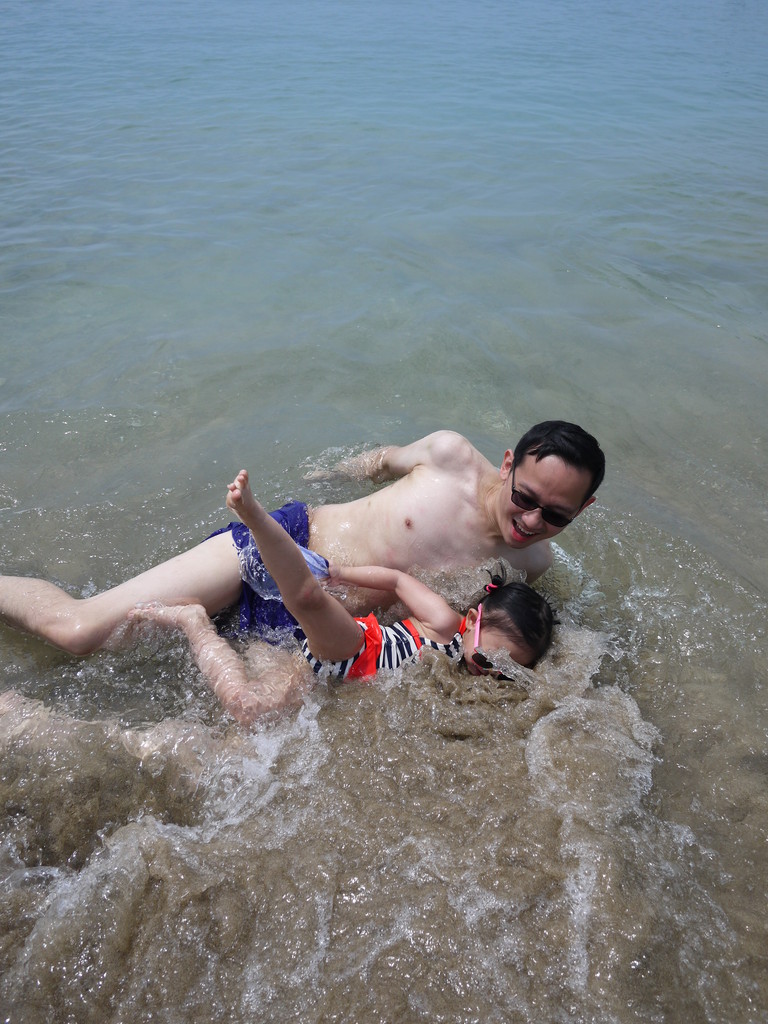 爸比一步一步她海水~