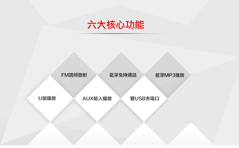 ●外精小巧,方便各汽使用 ●汽火後,能示前汽瓶的 ●支持播放USB歌曲 ●牙免提功能