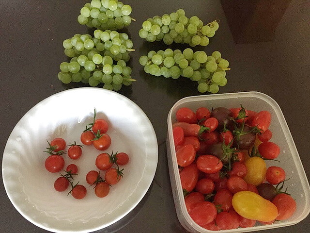 肯特有著手指,每年耗力,施肥灌溉,精心照後院植的水果,所以得都很好。葡萄香甜,番茄也甜,非常好吃!
