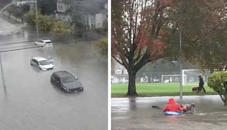 在本拿比的 Still Creek 地,有人看到汽和至少一巴士被淹在水中。本那比市公共工程卡特 (Brian Carter) 表示,是端情。「可能是我多年的最重的洪水。」