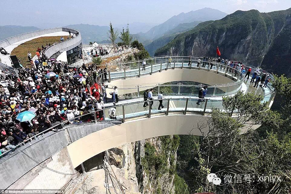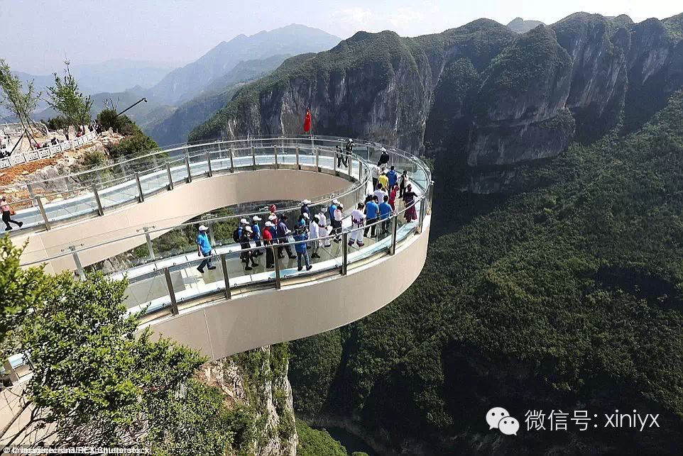 重上月一延伸出崖的玻璃走道向公放(片源:)