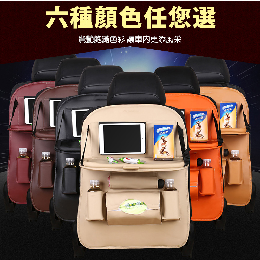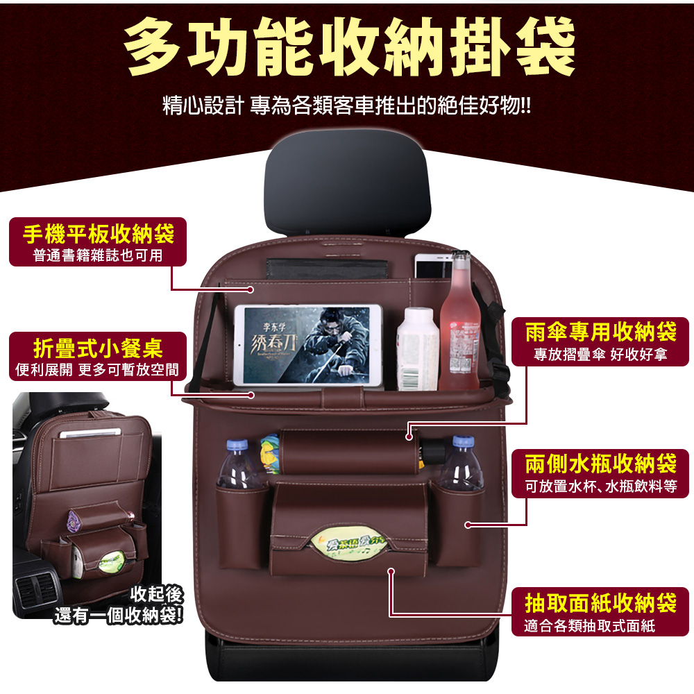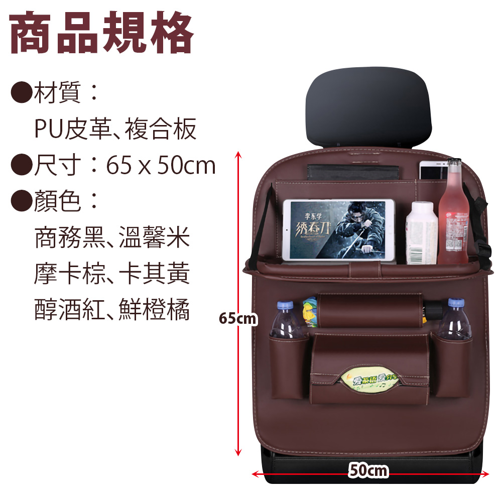 汽座椅背托式收袋可以收iPad、手、巾、折、料...等物,放下托可餐桌或iPad影片,也可防踢,保座椅背面清,弄後只需一毛巾,一擦,乾再,此保持整。