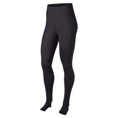 Nike Studio 緊身褲將經典版型再提高,並針對重點肌群設計漸進式加壓機能。全長垂直縫線可拉長整體視覺,褲腳皺褶可助維持緊身褲的位置。