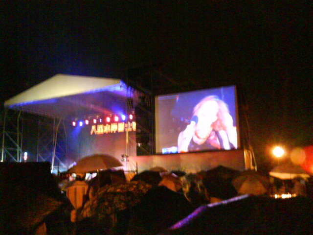 然皮的雨忽大忽小台上的表演者要有人在一旁他打