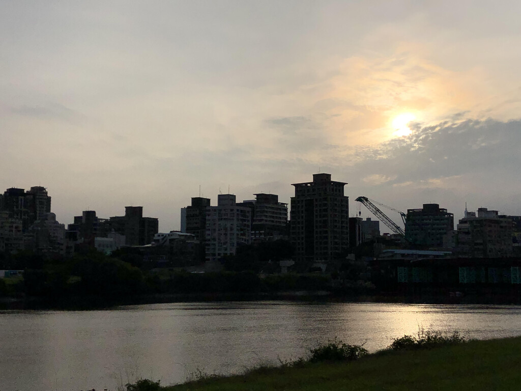 淡水河的河水映著晨光,波光著水波西去,像了光的流逝!