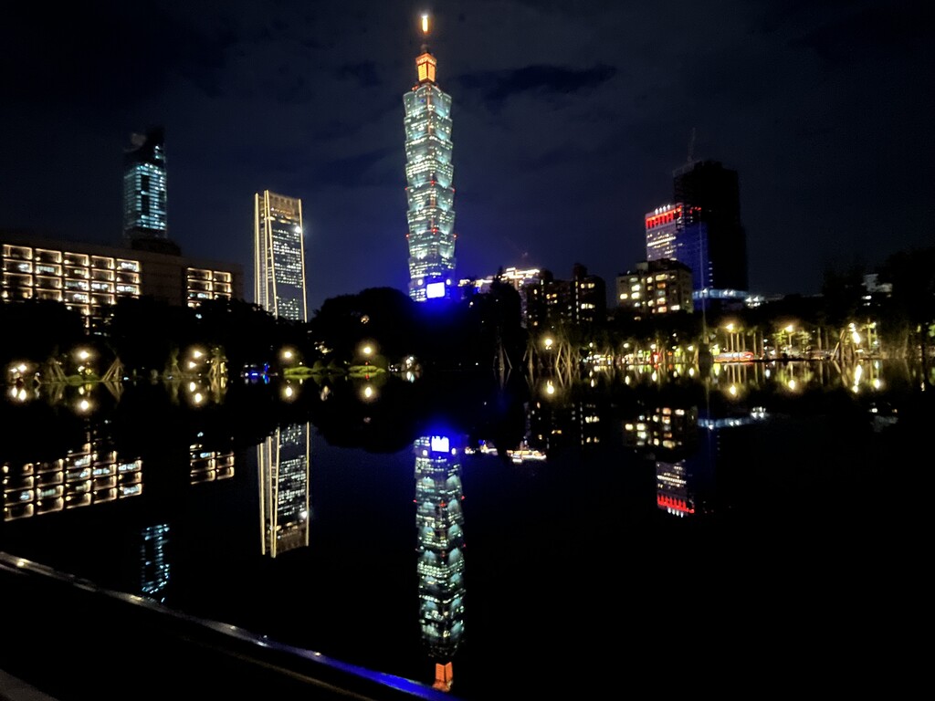 我在外面鬼混了一天,等到晚上才到父念前的翠湖拍101倒影。的夜、暗暗的空, 101和附近大的光在夜晚得格外!真是迷人啊!不感要每天都拍一,才可以集彩虹七色!