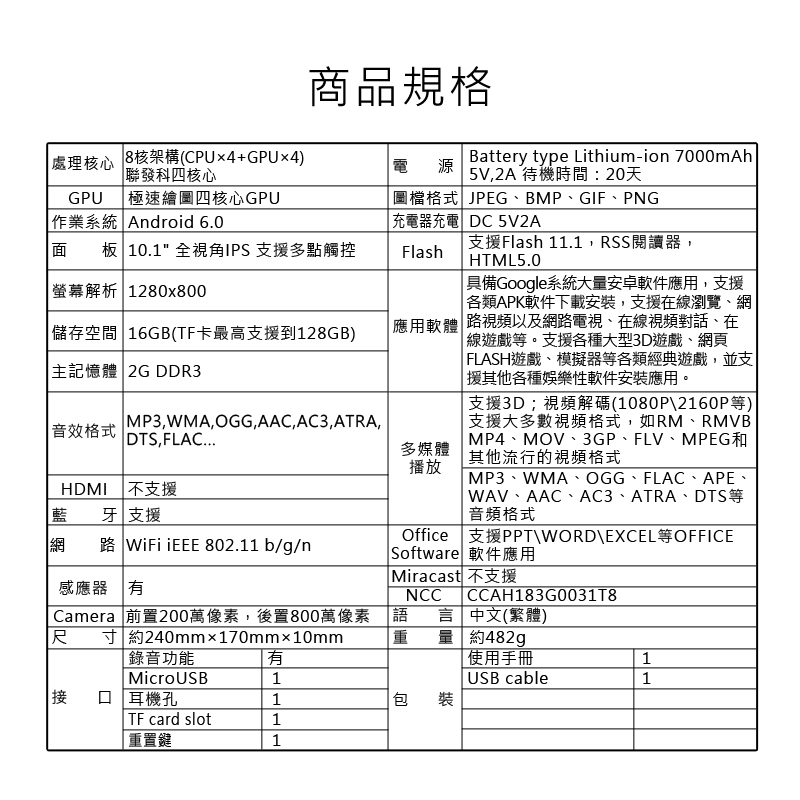 ★ Android 6.0 ★路品人品 16:9幕 ★ 8核架(CPUx4+GPUx4) ★ 科四核心 ★