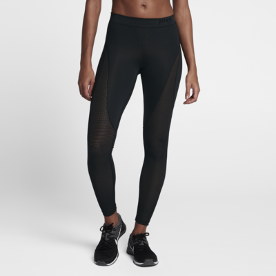 Nike Pro HyperCool 女款訓練緊身褲採用透氣網布縫片及伸縮材質,可在運動時帶來透氣舒適度。