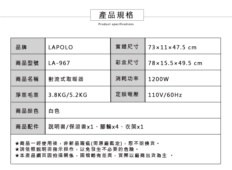 【LAPOLO】LA-967 乾2用直立壁暖器 ,推,箱,CP值,,,便宜,惠,介,排行,精,特,周年,,限