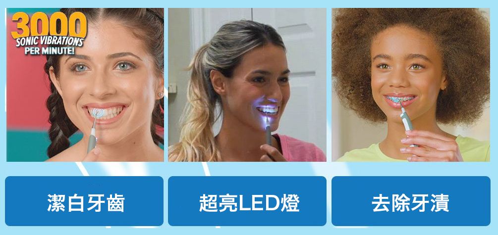 ●用智能高振 ●身一化 ●需接水,呵牙健康 ●小清,深入清刷部位 ●使用後直接清水洗