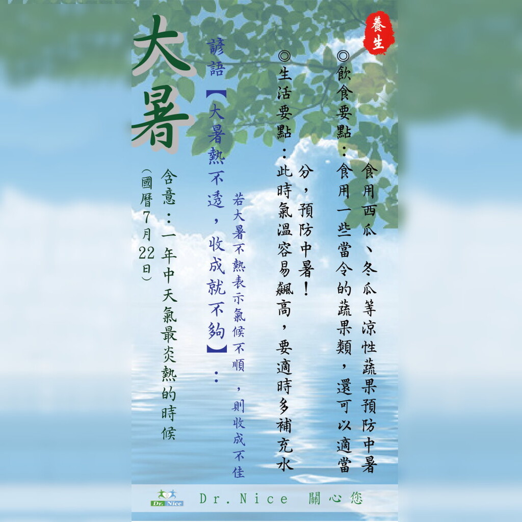 7/22是大暑的。:「斗指丙大暑,斯天甚於小暑,故名大暑。」大暑,名思是一年之中最的刻,有句俗:「大暑曝死老鼠」,到了候,每日到氏35度以上很常,而台於海型潮候,往往人流了整身汗,又又全身黏搭搭的,相的不舒服。