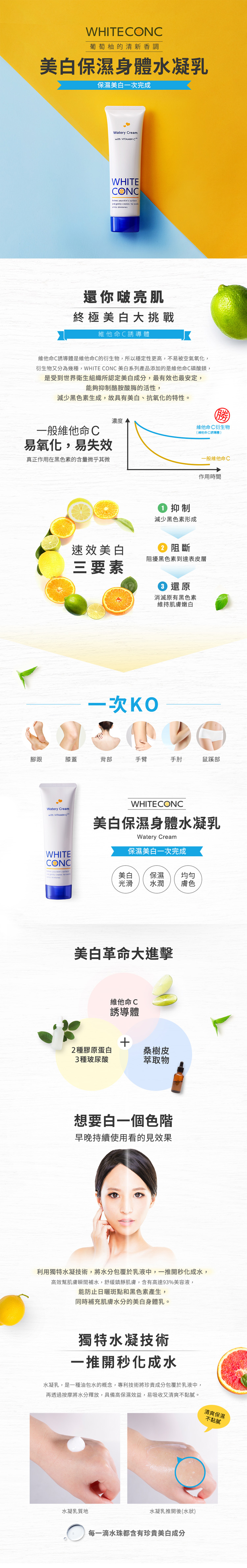 以下是日本 WHITE CONC~用水凝露II(90g)身水凝乳 - 03600008 的介 如果也跟我一喜不妨看看喔!