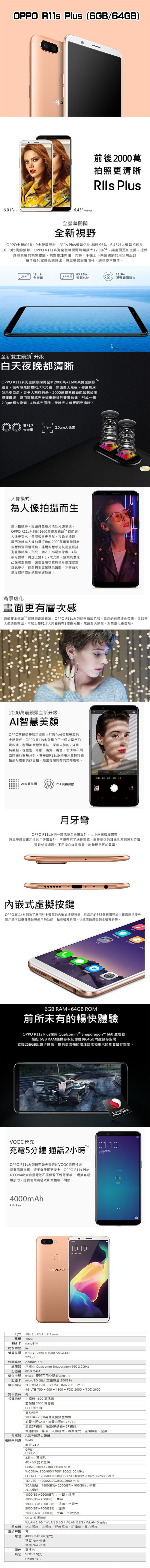 【OPPO】OPPO R11s Plus 6.43八核心全幕手 (福利品) ,推,箱,CP值,,,便宜,惠,介,排行,精,特,周年,,限