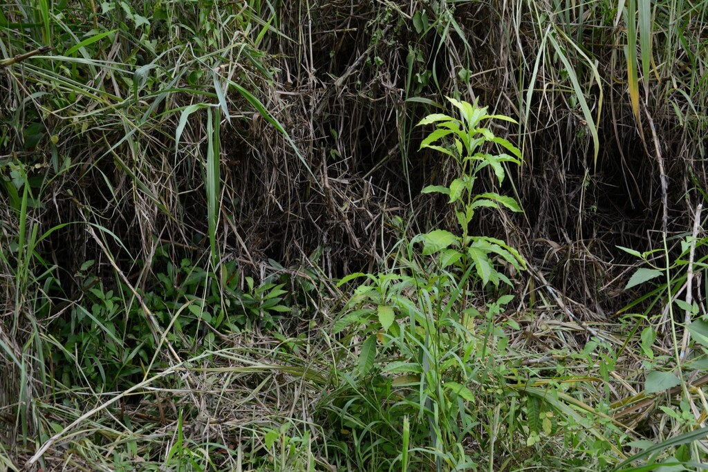2013年,株汰存菁的晶果苗於在坑下,但地在得不好,在大片芒草勉砍出的一方土地上。