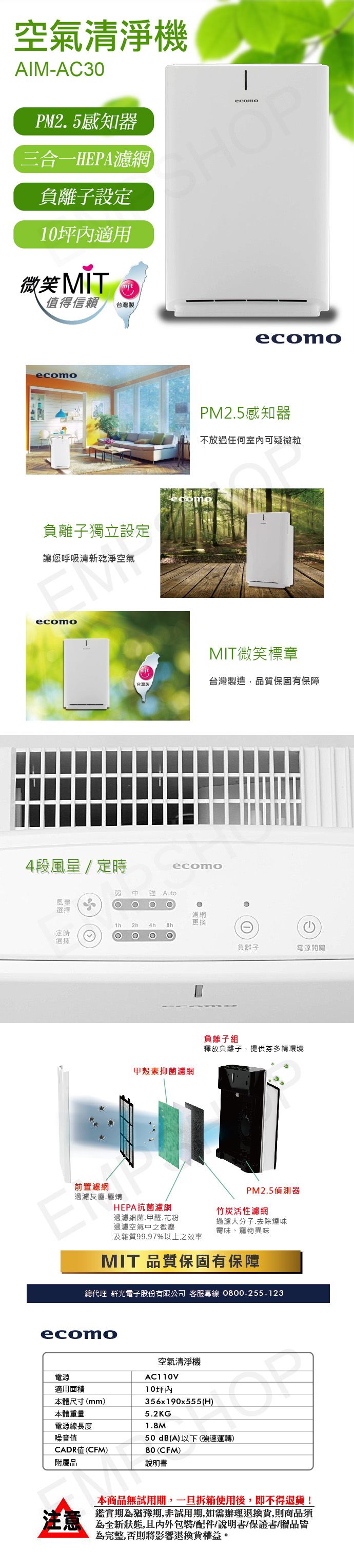 【日本ecomo】10坪MIT空清 AIM-AC30 ,推,箱,CP值,,,便宜,惠,介,排行,精,特,周年,,限