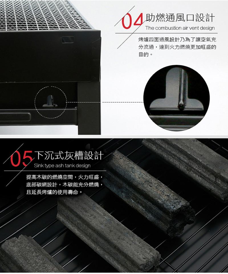● 碳槽凹槽可少木炭直接接底部好清洗