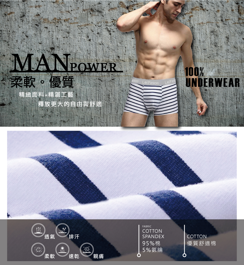 ●?人四角,透性佳,柔舒,耐洗耐穿不易形!