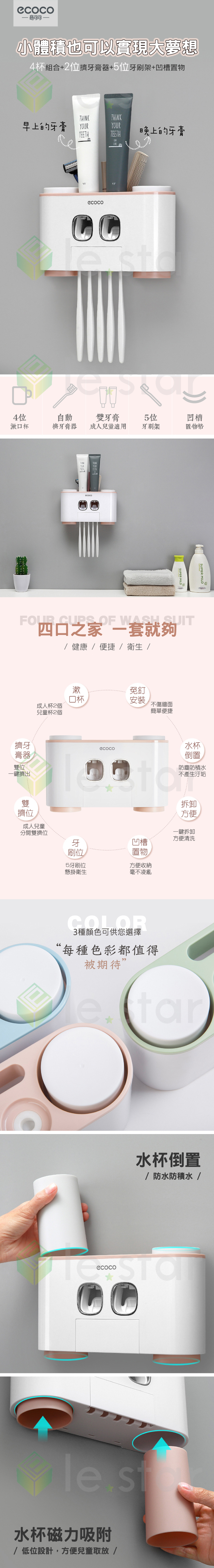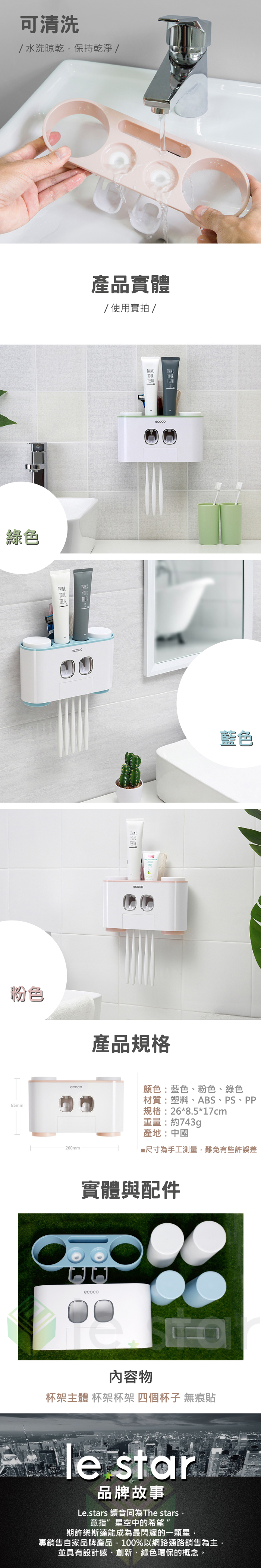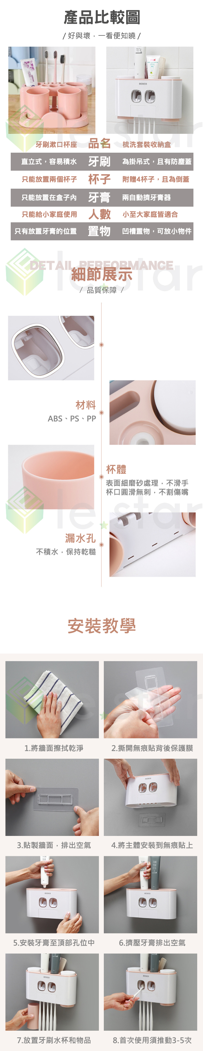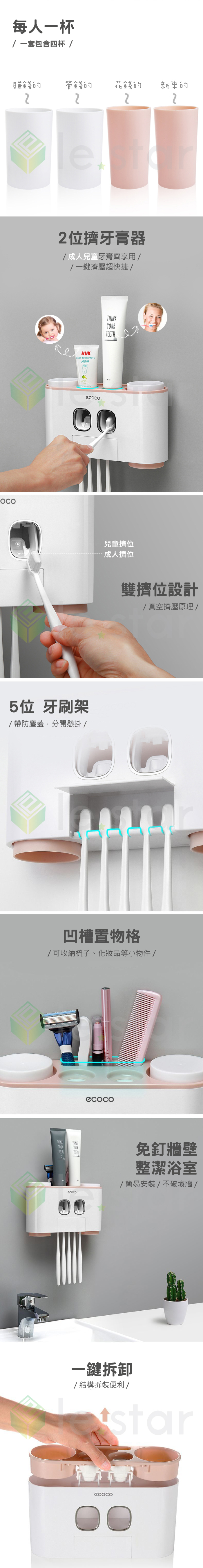 免、易安、易清洗、一拆卸;4杯子+2牙膏器+5牙刷架+凹槽置物,小也有大空,既用又美