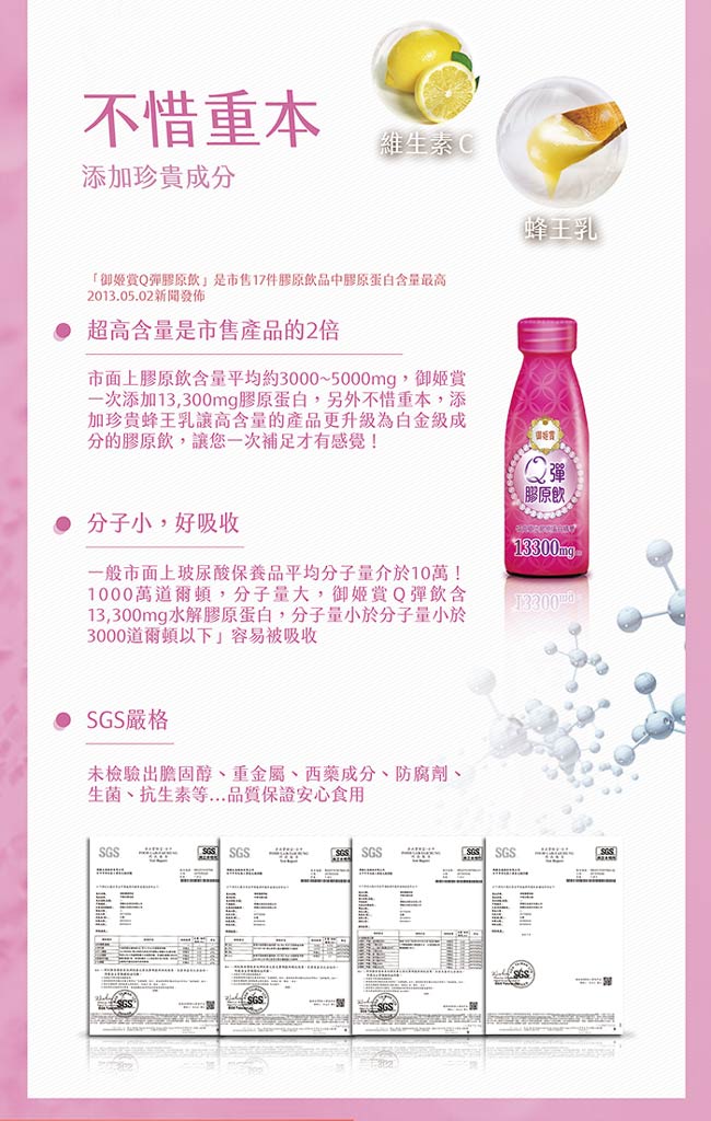 2018年度之冠!喝的保品!腥味,好喝口。高含量13300mg小分子原蛋白由而外完整吸收,美效能!