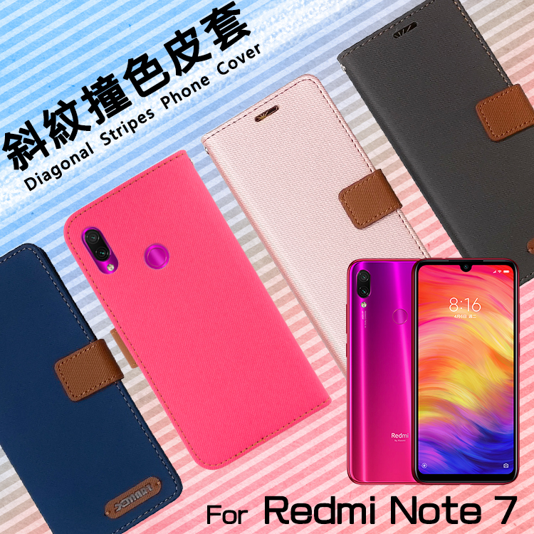 才原我想的MI 小米 Redmi 米 Note7 M1901F7H 精彩款 斜撞色皮套 可立式 掀 翻 皮套 插卡 保套 手套在就能到!!!