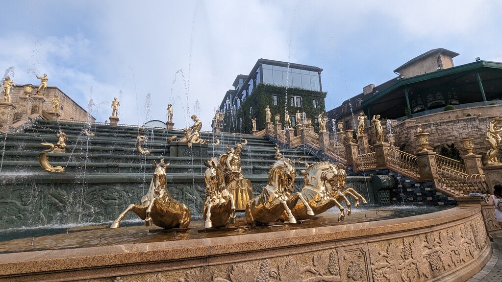 梯上金碧煌的雕像也煞有其事的~定巴拿山行程