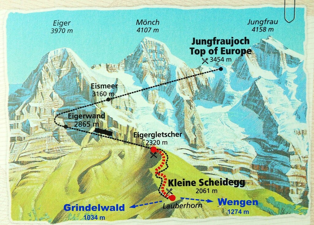 Grindelwald 格林德瓦,位於瑞士伯恩邦中部的市,於因特拉肯-上哈斯利,海拔高度 1034 公尺。在可以看到著名的艾格峰 (Eiger)、僧峰 (Monch) 和少女峰 (Jungfrau) 三座山峰的合,格林德瓦也是上少女峰的登山火的入口站,很多打算登上少女峰 的客都在此住宿。姐姐安排在格林德瓦住四晚,主要是要等天好的候少女峰,其他就在附近的景玩。