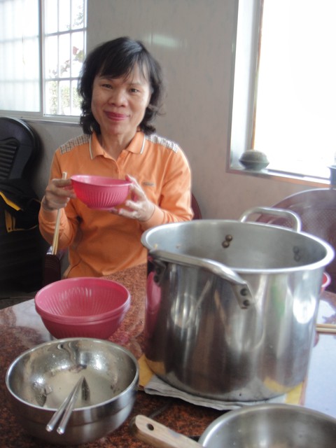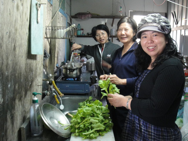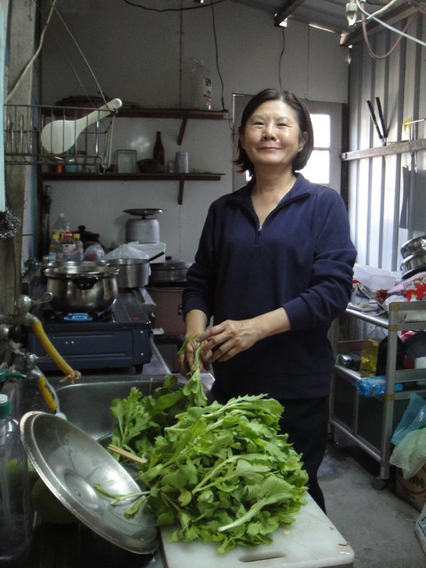 美珠姐手上的是山茼蒿,加在中,清翠爽口。