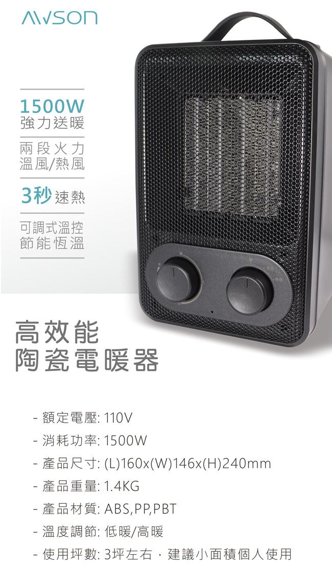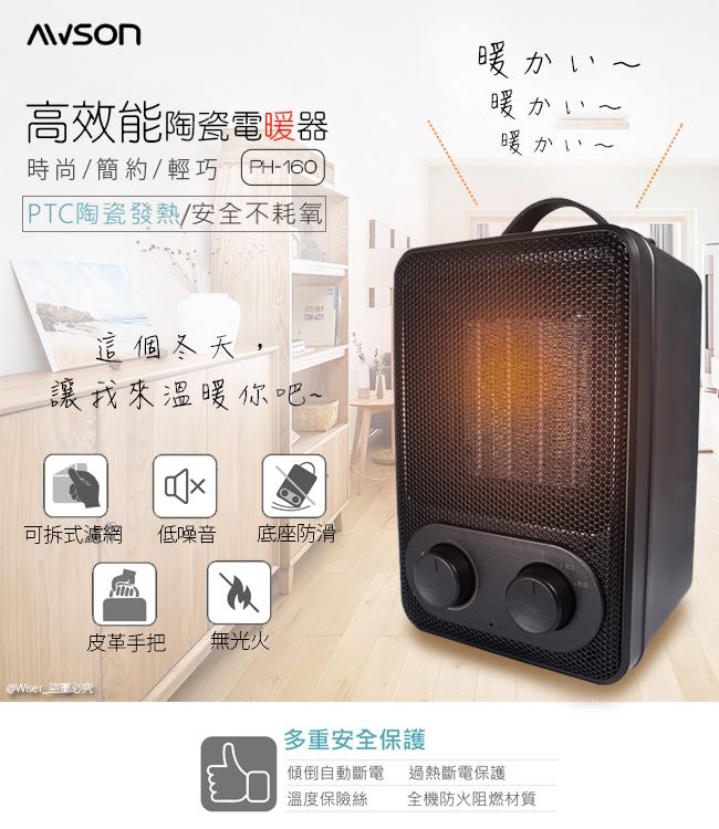 【AWSON】模式PTC陶瓷暖器(PH-160) ,推,箱,CP值,,,便宜,惠,介,排行,精,特,周年,,限