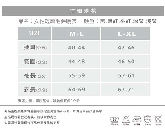 ※商品平放量,可能因某些因素生些差,差值在1~3公分上下合理。