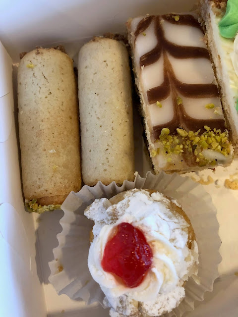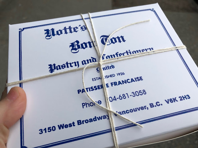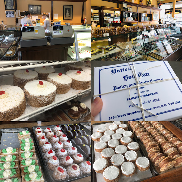 挑了6小心, 色花的就是diplomat cake外交官蛋糕, 吃起很像拿破蛋糕, 酥皮心有蛋糕, 味道不甜,真的好吃的! 另外的些小心,就真的甜了!不是人喜的~ Nottes Bon Ton Pastry & Confectionery Cakes Vancouver