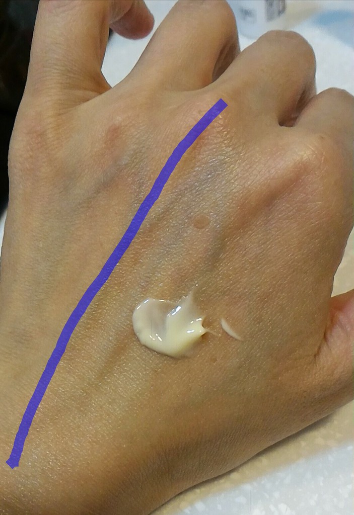 只要1珍珠大小就可以用於全. 有花香的淡奶油色, 抹在相同的手部位置, 沾取是郁的乳霜, 成液, 推上就吸收了.
