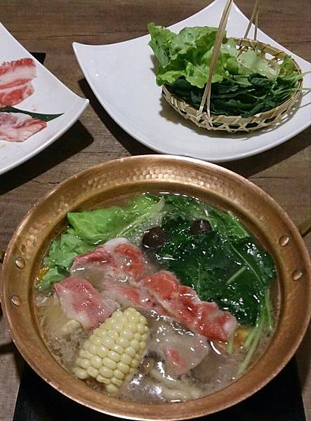 的雪花牛肉片和各式蔬菜都很好吃又新