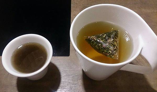 茶是於放的茶, 喝起有清的薄荷茶
