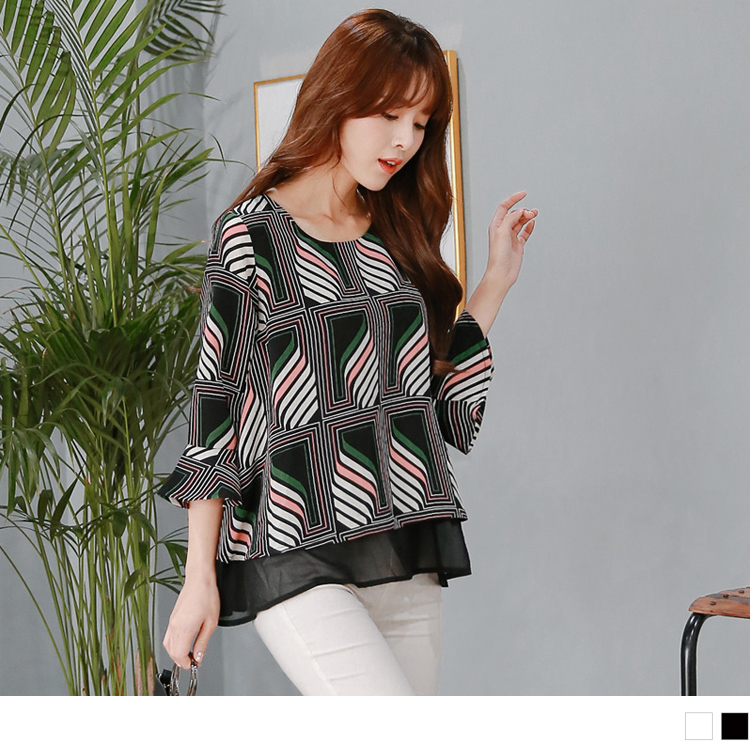 【人商品】何形配色荷袖雪拼接上衣.2色 活