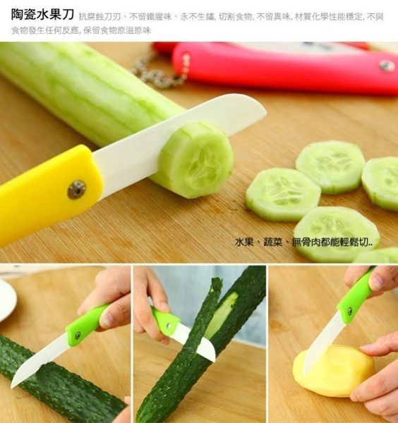 陶瓷刀面,可直接切食物,刀刃利比,水果、蔬菜、骨肉及熟食等,都可以削切,密不滋